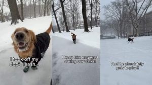 The onscreen caption says, “I don’t know the secret to happiness but I’ve never been sad watching a dog grocery shopping.” While the caption under the video perfectly adds, “Watching a cloud look for his favorite cheese snack is an instant mood booster.”