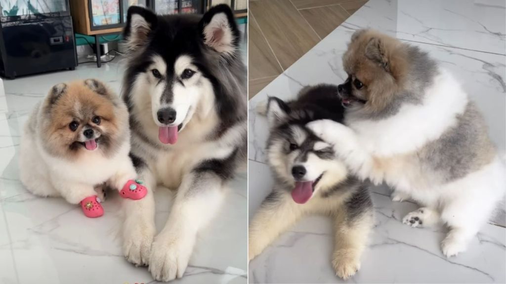 And the energy level in that house went from zero to a hundred real fast. Freya was just a little fluffball back then. They started sprinting around the dining table together. Adalind would even put her tiny paw on Freya’s head to show her who was boss. It is funny because even though one is a Pomeranian and the other is a big Husky, they are always together in the video. “Best friends forever,” the owner says. You can see it in every clip.